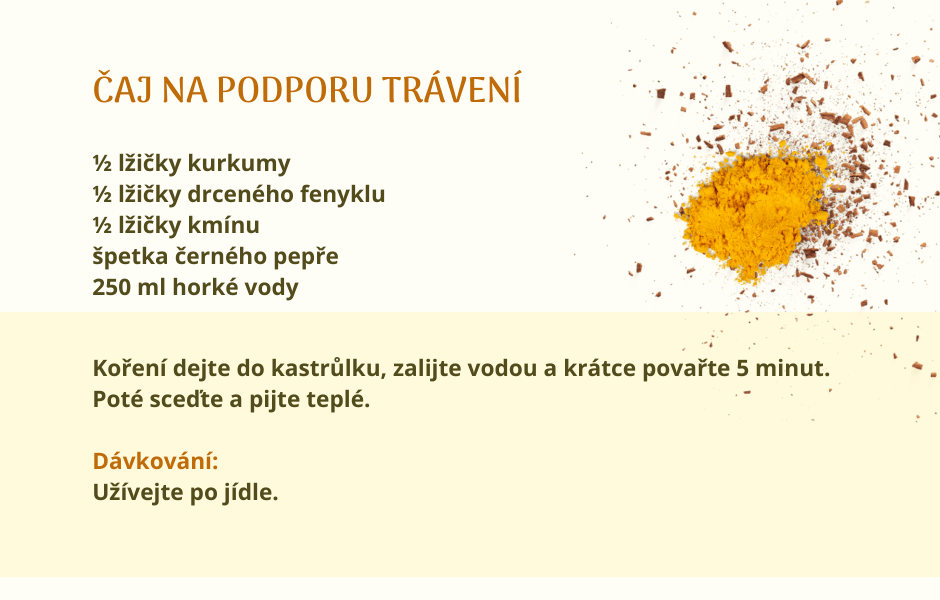 Stimuluje tvorbu žluči, podporuje trávení tuků a pomáhá při nadýmání a pocitu plnosti.