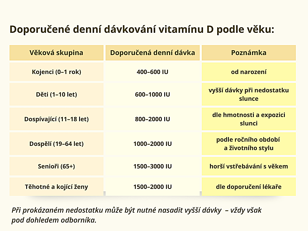 Z praktického hlediska se proto doporučuje užívat vitamín D: